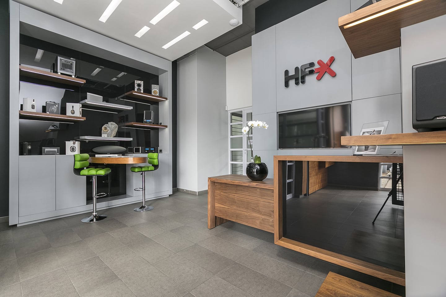 HFX Systems, a specialist supplier of quality high-performance audio equipment are a formidable force. What they do with sound, we do with wood, the creation of a symphony through hard work, skill and expertise give us common ground. We are so proud to partner with them in the design, supply, manufacture and installation of offices, desks, boardrooms, demo sound studios and audiovisual rooms, the combination of sound and furniture will blow you away. Fasture delivered on the corporate sophistication undertone required from this project.